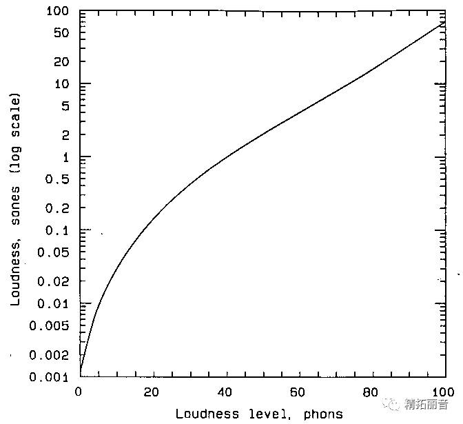 从这个关系图中可以看出,40方以上的响度级,基本遵循每上升10方,响度增加1倍的关系,40方以下的声音,呈现一种非线性关系。这样,在设置功放音量调节步长时,需要在低音量时需要减小步进长度。