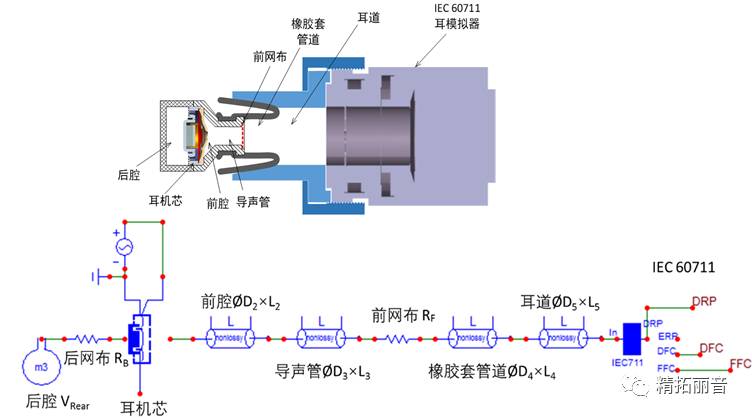 即使在非常小的器件里,Thiele-Small参数仍然适用,需要结合器件内部的腔体和管道,建立起耳机芯的声学模型