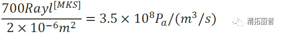 这里的声阻,实际是比流阻, R = Δp / U 这里的Δp是网布两面的压力差,u流速,参数跟面积无关;在特定面积上的阻尼,表示为R = Δp / U , 这里的U是体积流速。
