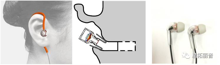 入耳式耳机通常的佩戴方式如下图所示,最右边是我们将要进行仿真的耳机。