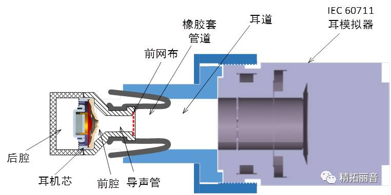 而入耳式耳机的测试示意图,下图所示。