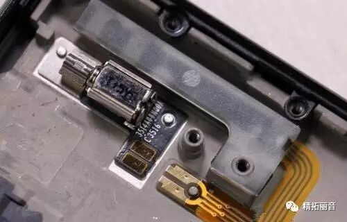 拆开手机可见手机使用了传统的1511微型扬声器作为免提和铃声播放;传统的振动马达,在主摄像头上方水平放置有一片长方形压电陶瓷;